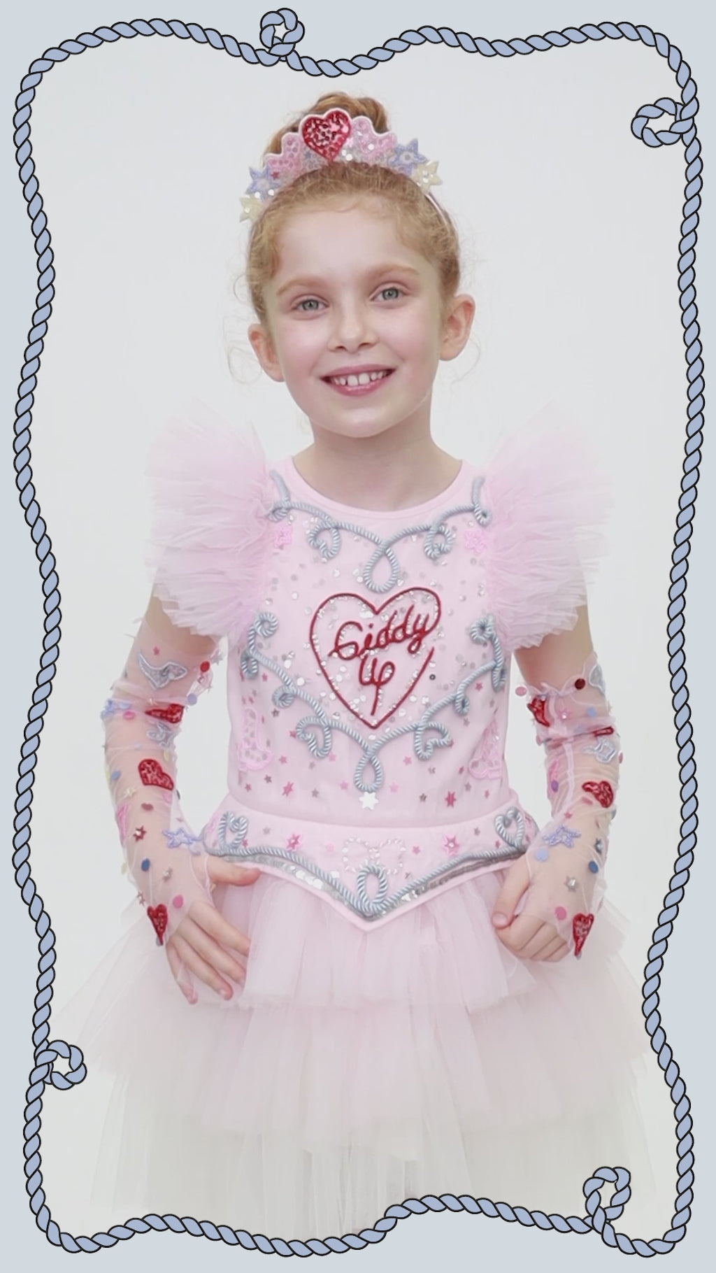 Let her hands dance to the beat with the Boot Scootin Gloves in Candy Floss! Adorned with sparkling stars, hearts, and music notes, these gloves add a playful pop of rhythm to every move. Perfect for little rockstars ready to shine and groove in style, because every gesture deserves its own spotlight!